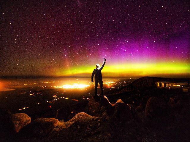 This natural phenomenon lights up the sky with ribbons of pink red and green light. Tourism Tasmania Paul Fleming. When an alert is current the alert information indicates the latitudinal range in terms of high middle low and equatorial regions where aurora may be visible under good observing conditions.